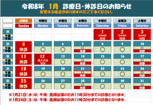 令和8年1月の診療日